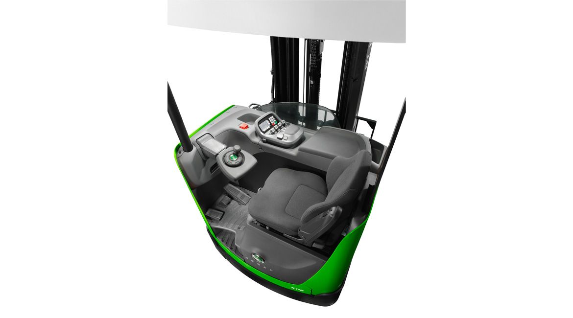 La CESAB R100 també aprofita a el màxim el disseny ergonòmic intel·ligent. L’altura de terra ajustable, les consoles de control i el seient permeten adaptar el carretó a mida de la persona que es troba darrere dels comandaments, ja que un operari que està còmode és més productiu.